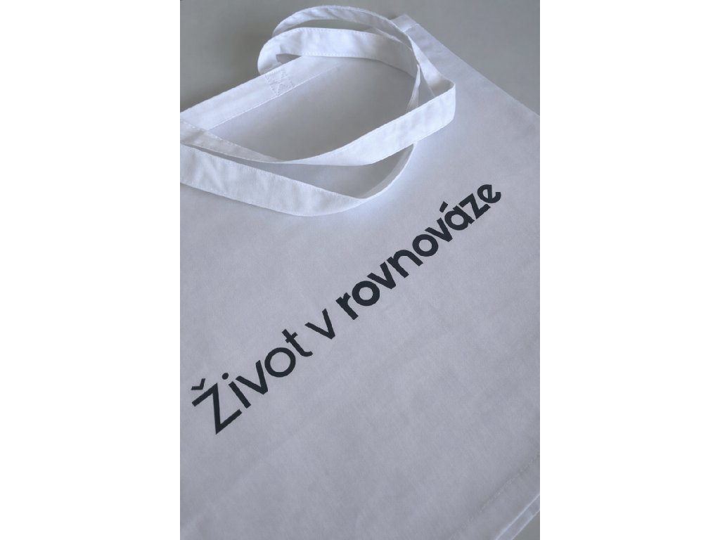 Stylová bavlněná taška s šedým nápisem "Život v rovnováze"