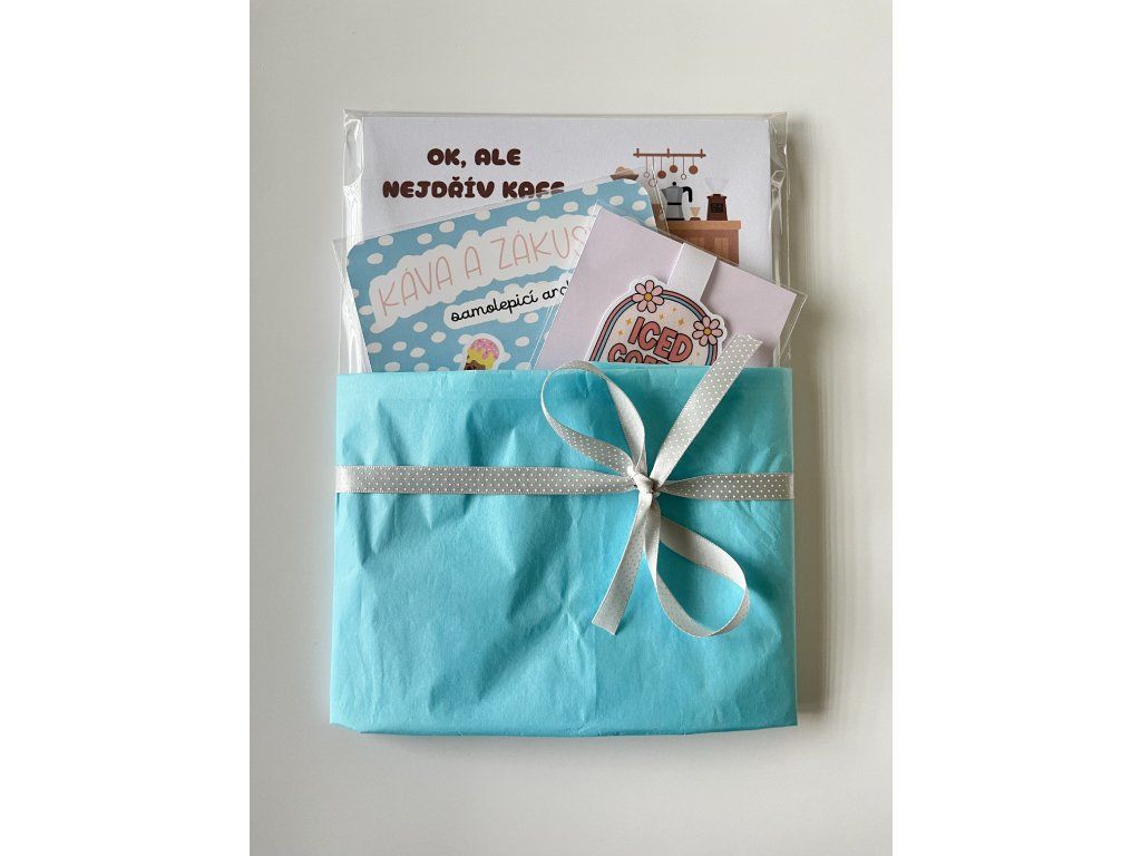Stylový dárkový balíček s papírenskými produkty pro milovníky kávy.