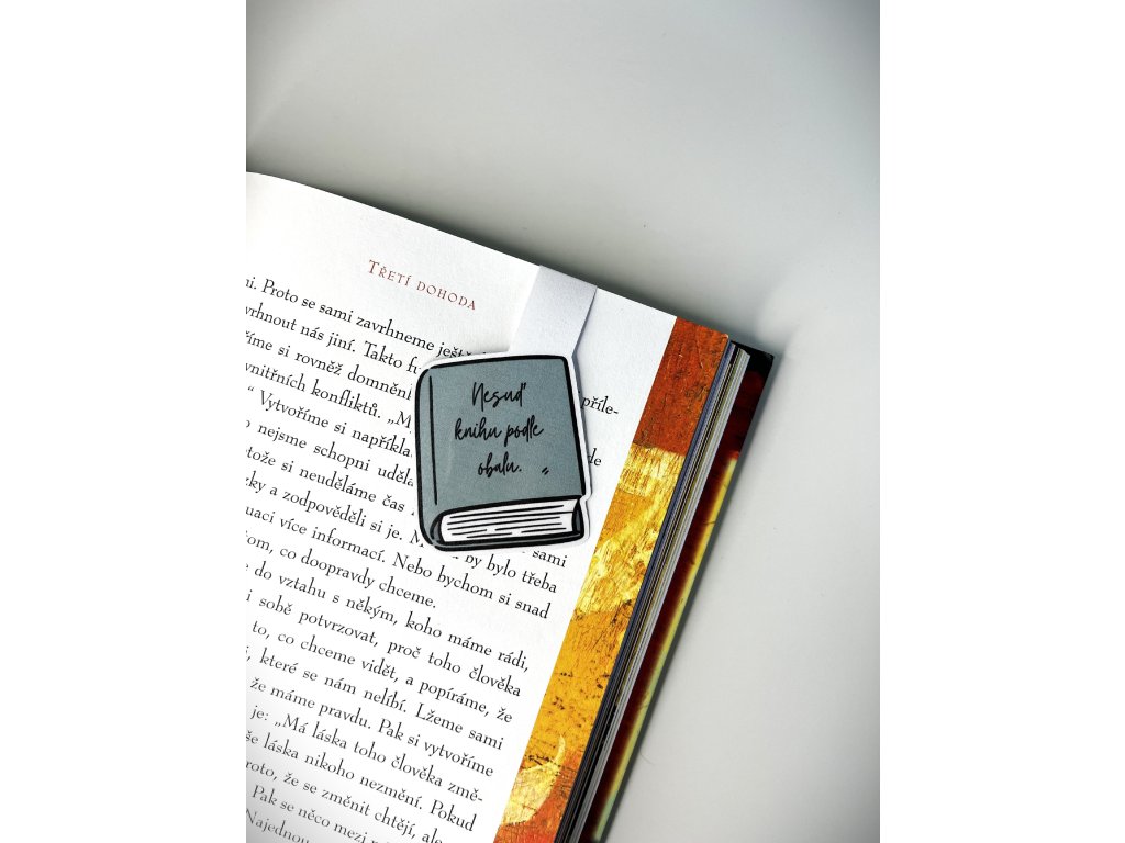 Už nikdy neztratíte stránku, kde jste přestali číst. Tato magnetická záložka s motivem knihy a nápisem "Nesuď knihu podle obalu" je nejen praktickým pomocníkem, ale také krásným doplňkem každé knihy.