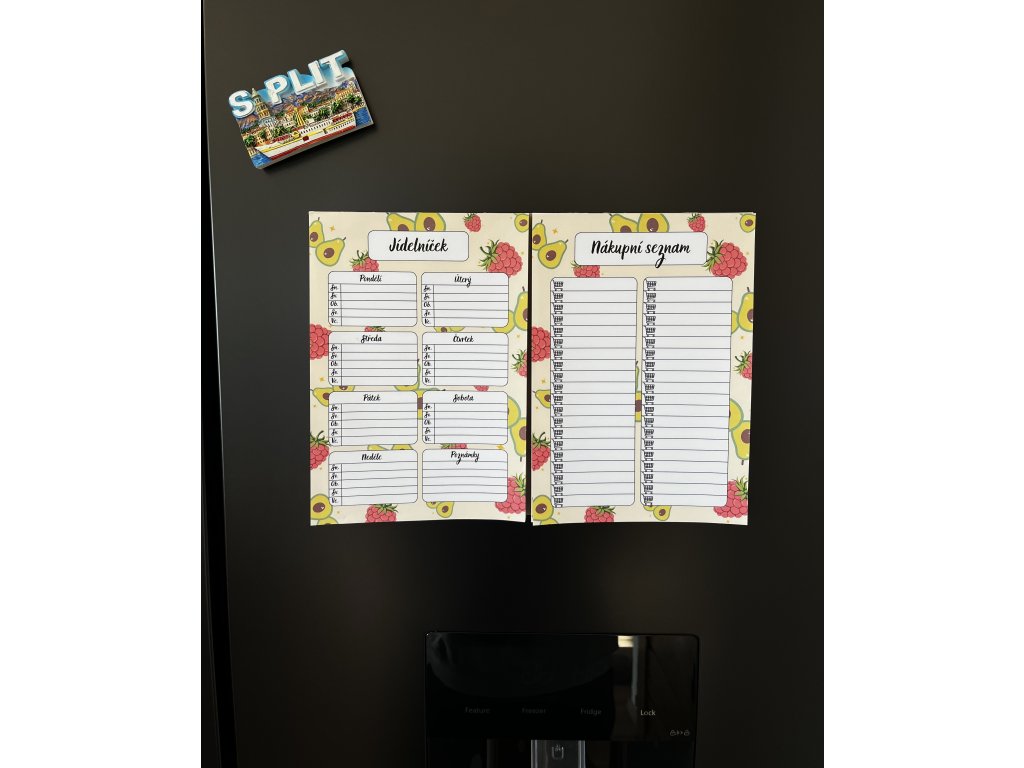 Díky magnetu blok jednoduše připevníte na lednici, takže ho budete mít vždy po ruce při plánování i při kontrole zásob v kuchyni. Veselý ovocný design navíc zpříjemní každodenní organizaci domácnosti.
