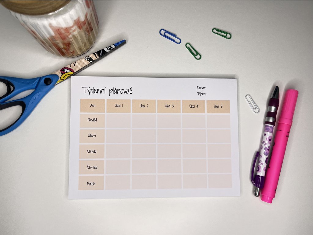 Udělejte si v úkolech pořádek stylově. Tento minimalistický týdenní plánovač je nejen praktickým pomocníkem, ale i krásným doplňkem vašeho pracovního stolu.